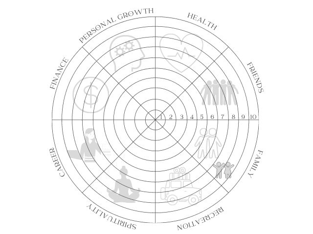 Download the Wheel of Life worksheet below 👇 and try the exercise yourself to see what your current life balance satisfaction is.